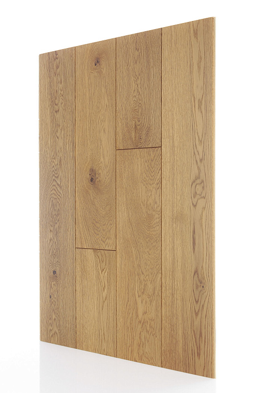 В ассортименте представлены разные оттенки дуба и способы декоративной обработки, а также 3 сортировки дерева: классик, прайм и рустик. Варианты финишного покрытия: 5 слоев лака или 3 слоя масла.