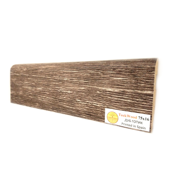 Современные технологии, экологичные материалы, современный дизайн и непревзойдённое качество от Teckwood воплотились в плинтусе Дуб Готик (Oak Gothic) 75 мм. Дуб Готик (Oak Gothic) 75 мм. соответствует международным стандартам качества ISO-9001 и международным экологическим стандартам по сертификатам ISO 14001.