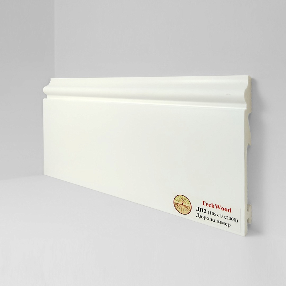 Плинтус Белый ДП2 105х14 крепление на клипсу - это плинтус из новой линейки от бренда Teckwood. Современная коллекция плинтусов из дюрполимера. Плинтус имеет специальную поверхность, которая устойчива к повседневным воздействиям и царапинам, не боится воды и обладает высокой устойчивостью к воздействию окружающей среды. Отличительной особенностью данной коллекции плинтуса является ее уникальные свойства: