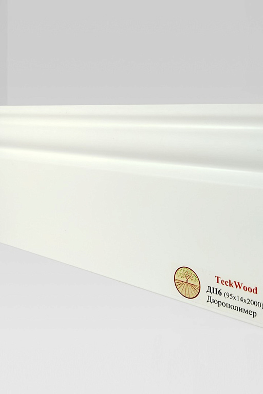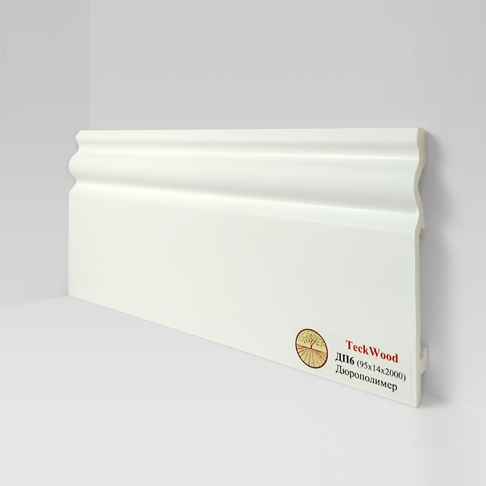 Плинтус Белый ДП6 95х14 крепление на клипсу - это плинтус из новой линейки от бренда Teckwood. Современная коллекция плинтусов из дюрполимера. Плинтус имеет специальную поверхность, которая устойчива к повседневным воздействиям и царапинам, не боится воды и обладает высокой устойчивостью к воздействию окружающей среды. Отличительной особенностью данной коллекции плинтуса является ее уникальные свойства: