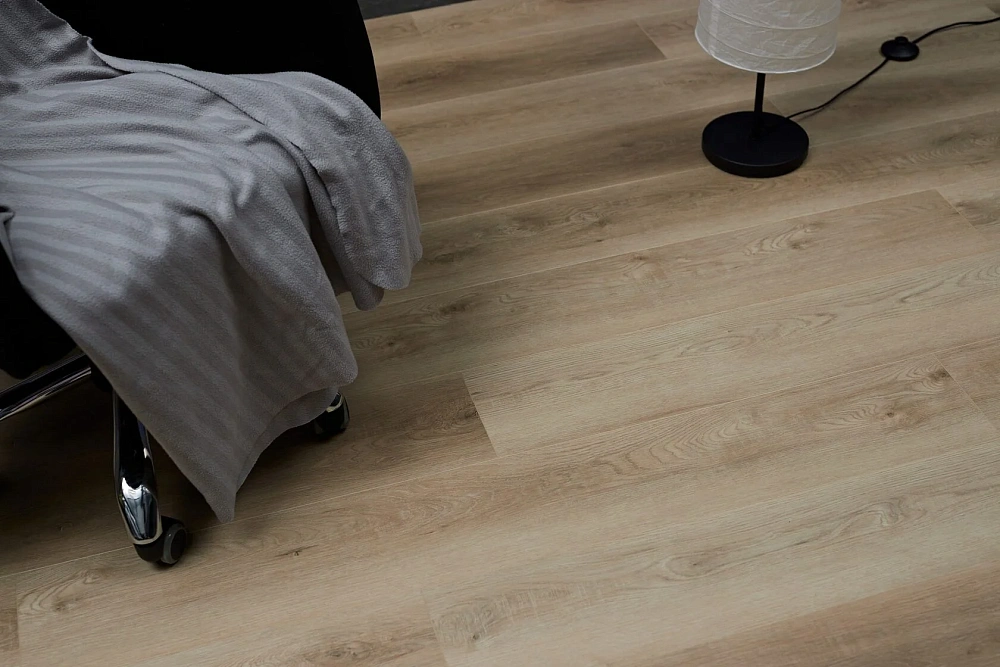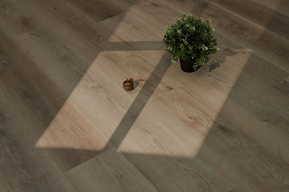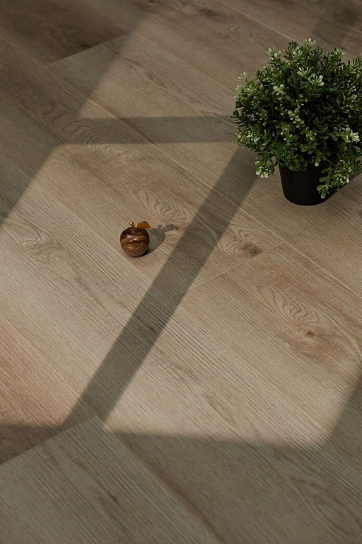 Оптимистичный и универсальный – это то, что можно сказать о декоре Фердинанд. Красивый бежевый цвет с золотистым подтоном, который раскрывается во всей красе в помещениях с обилием солнечного света. Прокрашенная в цвет аккуратная четырёхсторонняя фаска, умеренное количество сучков и годичных колец делает рисунок максимально похожим на паркет из натуральной древесины дуба.
