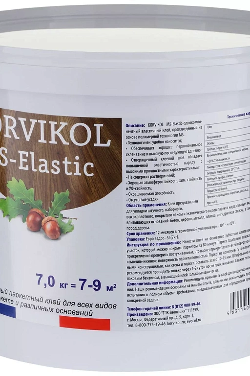 Клей для паркета 1-компонентный KORVIKOL MS-ELASTIC 7 кг.