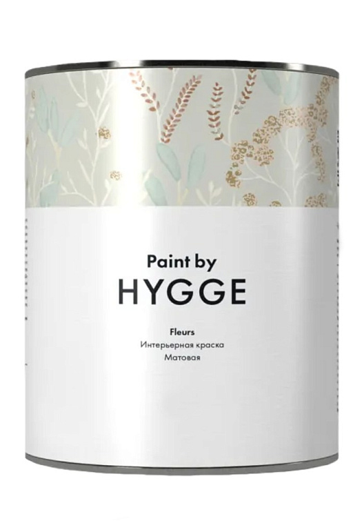 Hygge Fleurs — матовая интерьерная краска для сухих и умеренно влажных помещений. Подходит для покраски стен и потолков из гипсокартона, бетона, полиуретана или обоев под покраску. Устойчива к грибкам и плесени.
