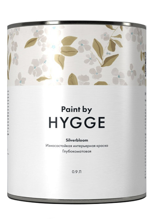 Hygge Silverbloom — глубокоматовая интерьерная краска повышенной устойчивости к механическим воздействиям. Подходит для покраски стен и потолков коридоров, торговых центров, детских комнат. В составе краски имеются добавки для защиты поверхности от плесени и грибков.